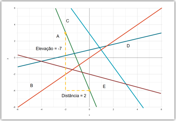 A fórmula da inclinação é \(m=\frac{variação\;em\;Y}{variação\;em\;X}\).